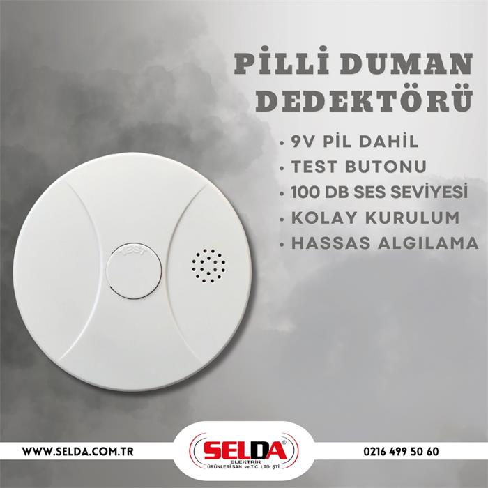 9V DC ile çalışan bir duman ihbar cihazıdır. Cihaz, en az bir yıl ömrü olan 9V pil ile birlikte kutu içeriğinde sunulmaktadır. 9V Pilli Duman Dedektörü; alarm sesinin evdeki herkes tarafından duyulabilmesi ve gereken tepkinin verilebilmesi için banyo dışında tüm odalara yerleştirilmelidir. Asgari düzeyde koruma sağlamak adına, yaşam alanlarıyla yatak odaları arasındaki geçiş noktalarına kurulum yapılması önerilir. Dedektörü, yaşam alanlarınıza mümkün olduğunca yakın konumlandırın ve yatak odasındayken alarm sesinin net şekilde duyulabildiğinden emin olunuz.